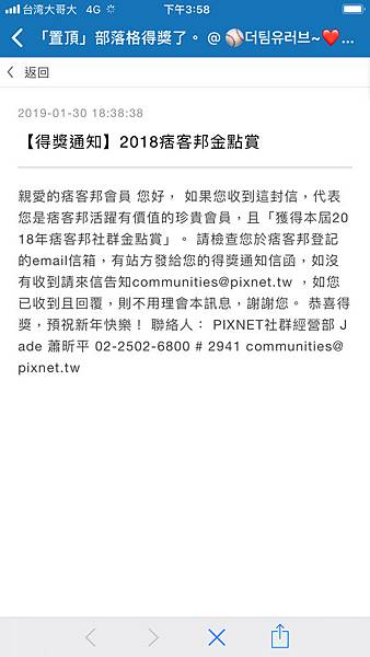 因為我的NAVER信箱去年中開始無法寄信只能收信,所以經過聯絡....是得獎了,除了網路公佈得獎名單表揚,他也有個頒獎典禮,要我們去參加領獎。